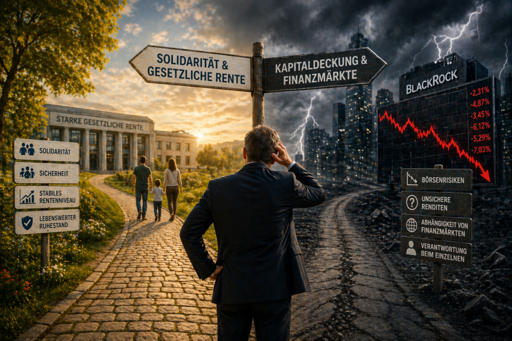 Wenn mehr Menschen privat vorsorgen müssen, fließen enorme Summen in kapitalgedeckte Systeme – und damit zu großen Vermögensverwaltern wie BlackRock.